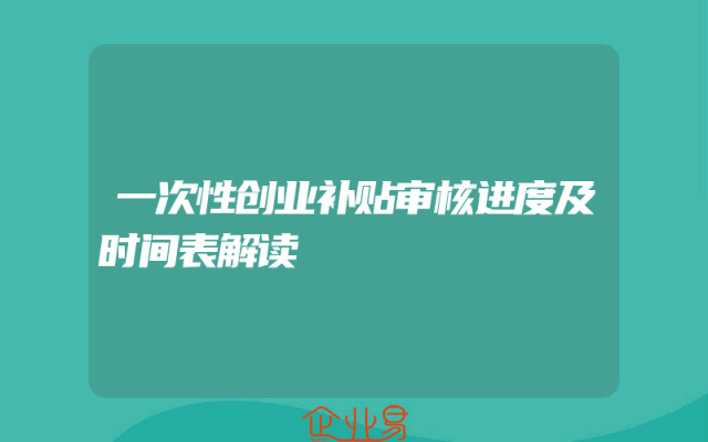 - 一次性创业补贴审核进度及时间表解读