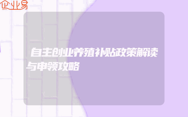 - 自主创业养殖补贴政策解读与申领攻略