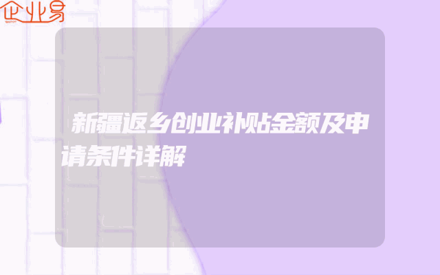 - 新疆返乡创业补贴金额及申请条件详解