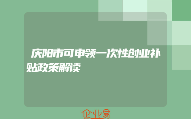 - 庆阳市可申领一次性创业补贴政策解读