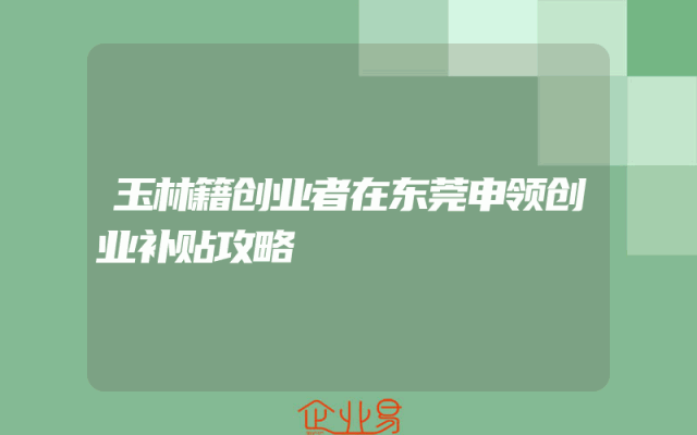 - 玉林籍创业者在东莞申领创业补贴攻略