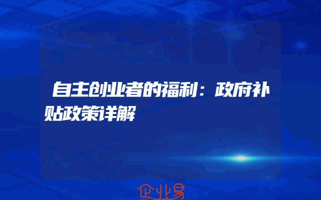 - 自主创业者的福利:政府补贴政策详解