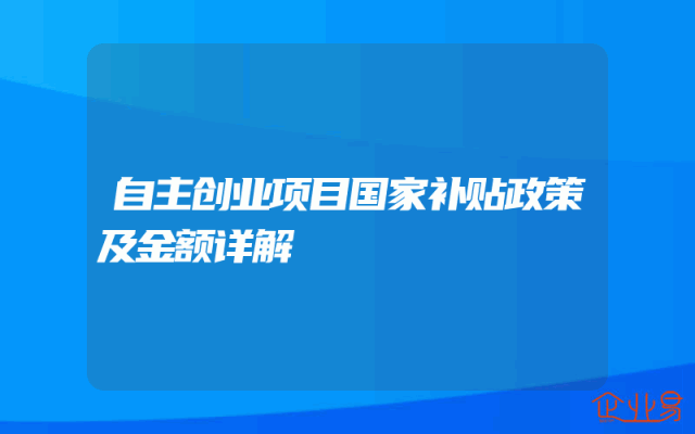 - 自主创业项目国家补贴政策及金额详解