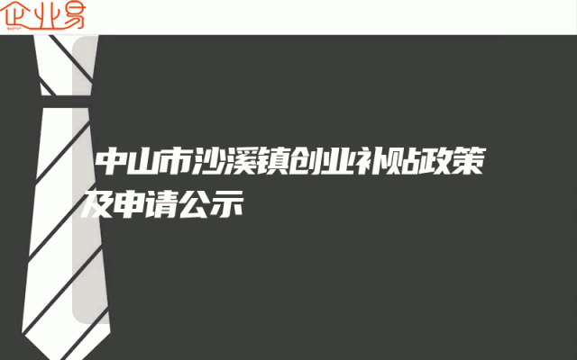 - 中山市沙溪镇创业补贴政策及申请公示