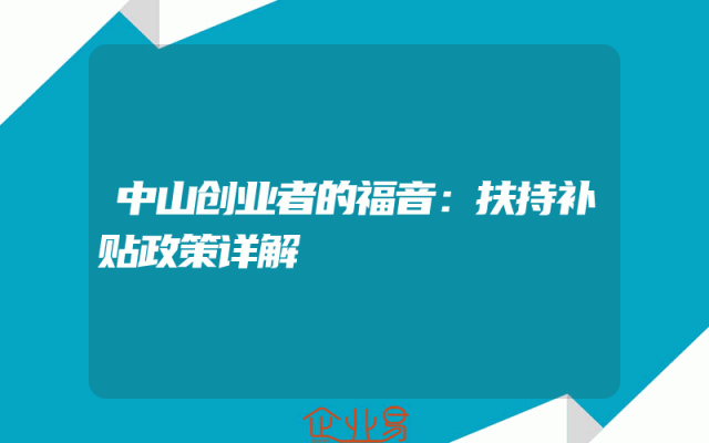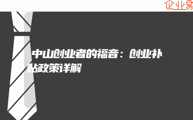 - 中山创业者的福音:创业补贴政策详解