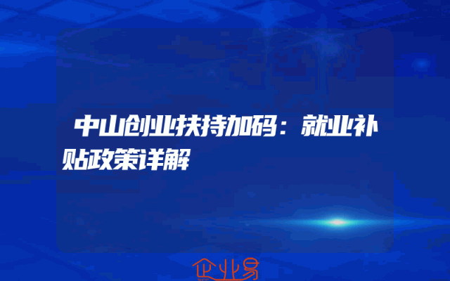- 中山创业扶持加码:就业补贴政策详解