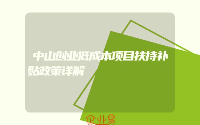 - 中山创业低成本项目扶持补贴政策详解