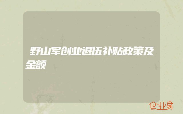 - 野山军创业退伍补贴政策及金额