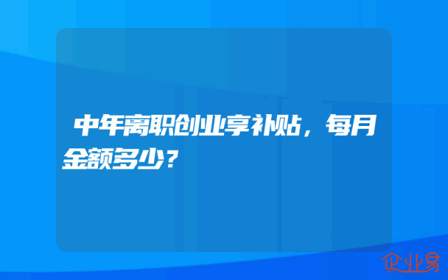 - 中年离职创业享补贴,每月金额多少?