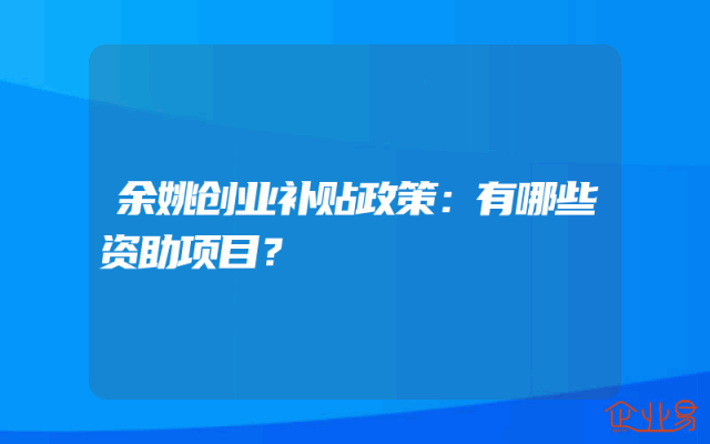 - 余姚创业补贴政策:有哪些资助项目?