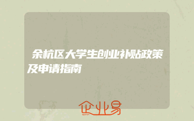 - 余杭区大学生创业扶持:补贴政策详解一、余杭区大学生创业背景及重要性在鼓励创新与创业的社会氛围中,余杭区一直视大学生创业为地区经济发展的重要动力。为激发大学生的创新精神和创业热情,余杭区制定了一系列具体的补贴政策,从多方面支持大学生创业。二、