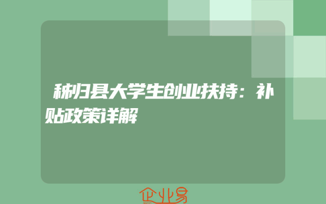 - 秭归县大学生创业扶持:补贴政策详解政策背景及意义秭归县政府高度重视大学生创业,为鼓励更多青年学子在本地创业创新,推出了一系列创业扶持补贴政策。这些政策旨在激发大学生创业热情,促进县域经济发展,同时提高大