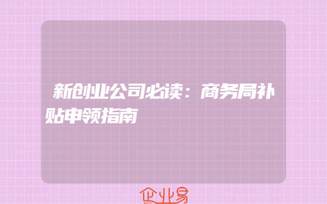 - 新创业公司必读:商务局补贴申领指南一、了解商务局补贴政策作为新创立的公司,了解并熟悉商务局的补贴政策是至关重要的一步。商务局为了鼓励创新创业、促进企业发展,会推出多种补贴政策。这些政策涉及资金支持、创业扶持、人才引进等多个方面,对于初创企业