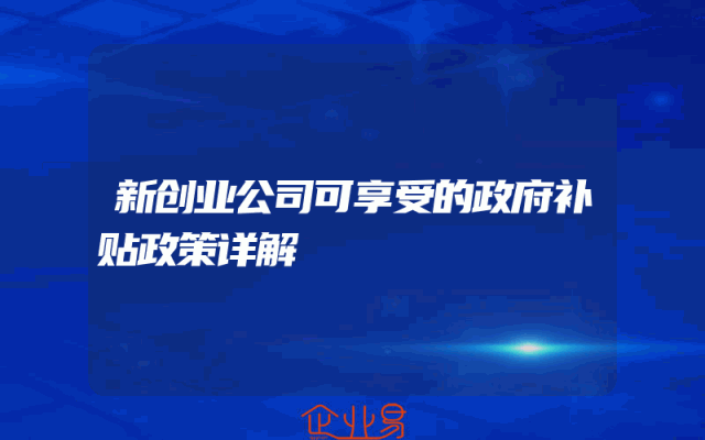 - 新创业公司可享受的政府补贴政策详解一、补贴政策概述随着国家对新技术的重视和创业环境的持续优化,政府针对新创业公司的补贴政策日益丰富和完善。这些补贴政策旨在鼓励创新、支持初创企业发展,为创业者提供有力的资金保障,进一步降低创业门槛。本文将详细