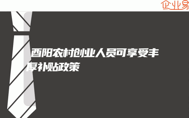 - 酉阳农村创业人员可享受丰厚补贴政策