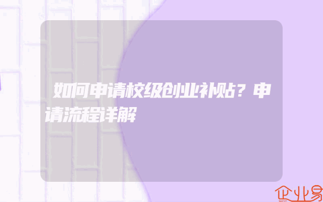 - 如何申请校级创业补贴?申请流程详解