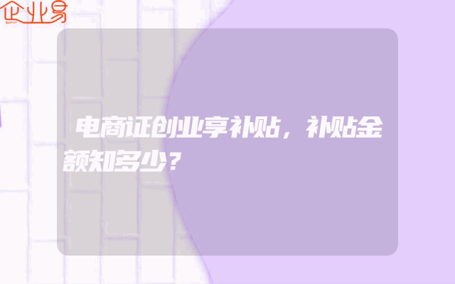- 电商证创业享补贴,补贴金额知多少?
