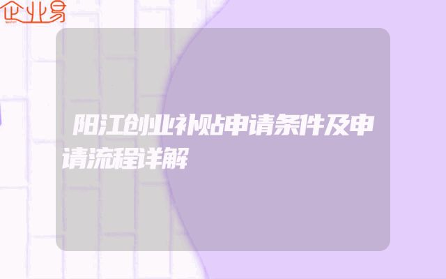 - 阳江创业补贴申请条件及申请流程详解