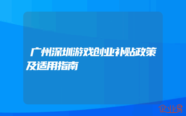 - 广州深圳游戏创业补贴政策及适用指南
