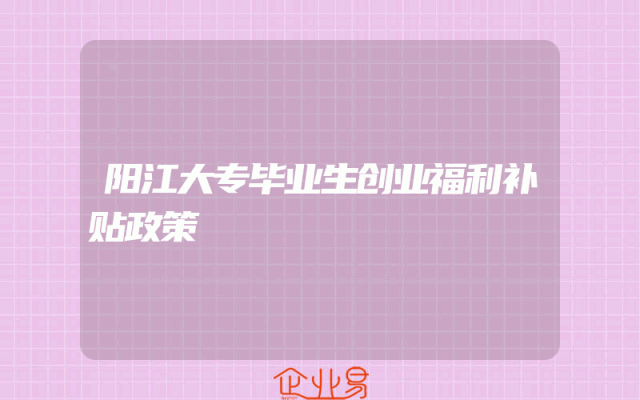 - 阳江大专毕业生创业福利补贴政策