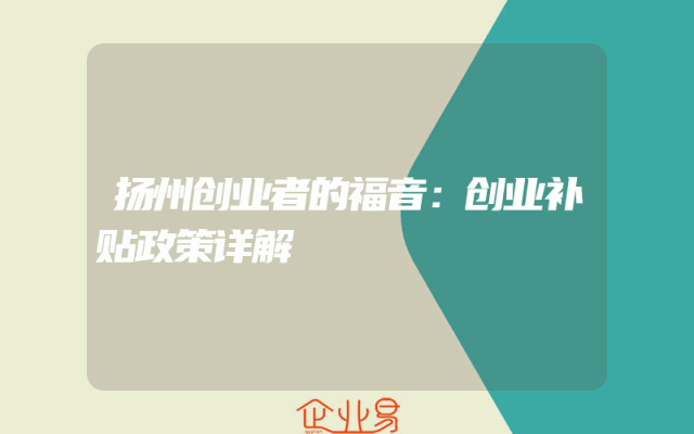 - 扬州创业者的福音:创业补贴政策详解一、扬州创业环境的概述扬州,一座历史悠久的城市,如今已成为创业的沃土。这里的地理位置优越,政府大力鼓励创业,为创业者提供了良好的发展环境。扬州的创业者们正迎来前所未有的发展机遇。二、创业补贴政策概览为了激发