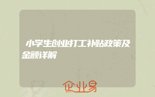 - 小学生打工创业补贴政策及金额详解政策背景近年来,随着社会的进步和教育理念的更新,越来越多的小学生们开始接触到创业的理念。为此,政府针对小学生打工创业制定了一系列的补贴政策,旨在鼓励更多的年轻人参与创业活动,培养其创新意识和实践能力。这些政策