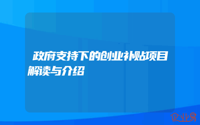 - 政府支持下的创业补贴项目解读与介绍一、创业补贴项目的概述随着国家对创新创业的重视程度不断提升,政府支持下的创业补贴项目日益增多,为创业者提供了强有力的支持。这些补贴项目旨在鼓励更多人投身于创业,降低创业门槛,提高创业成功率。二、创业补贴的种