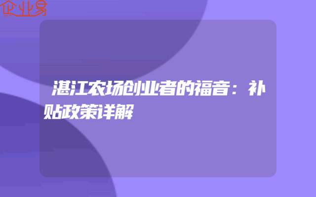 - 湛江农场创业者的福音:补贴政策详解一、补贴政策的概述在湛江地区,农场创业者正迎来一项重大福音——政府补贴政策。这一政策为农场创业者提供了强有力的支持,帮助他们克服创业初期的困难,促进农业产业的持续发展。本文将详细解读这一补贴政策,帮助广大农