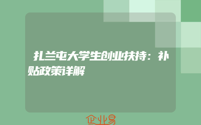 - 扎兰屯大学生创业扶持:补贴政策详解