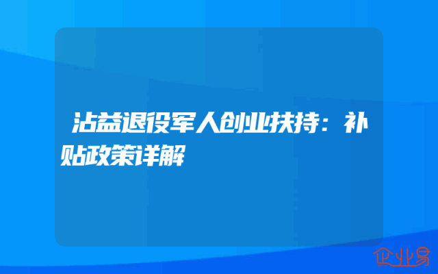 - 沾益退役军人创业扶持:补贴政策详解