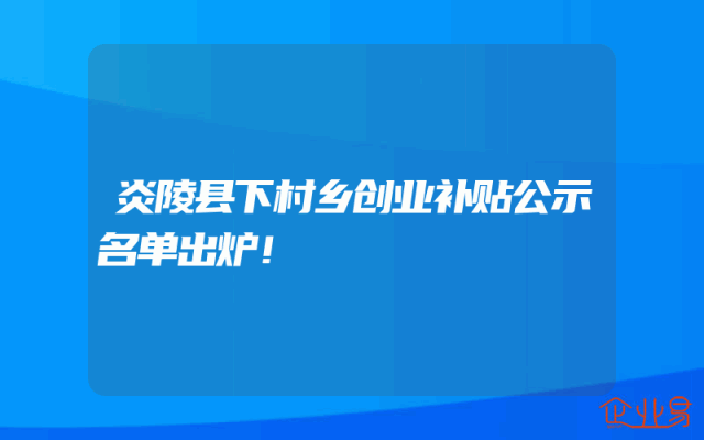 - 炎陵县下村乡创业补贴公示名单出炉!