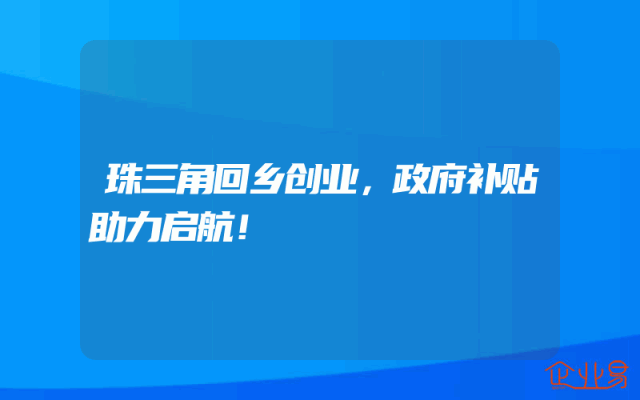 - 珠三角回乡创业,政府补贴助力启航!