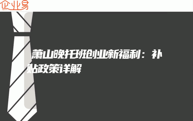 - 萧山晚托班创业新福利:补贴政策详解