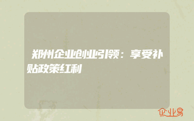 - 郑州企业创业引领:享受补贴政策红利