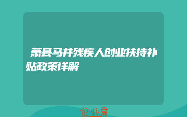- 萧县马井残疾人创业扶持补贴政策详解