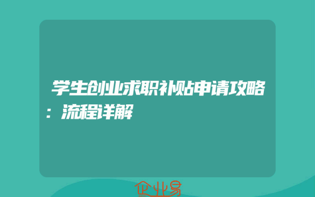 - 学生创业求职补贴申请攻略:流程详解