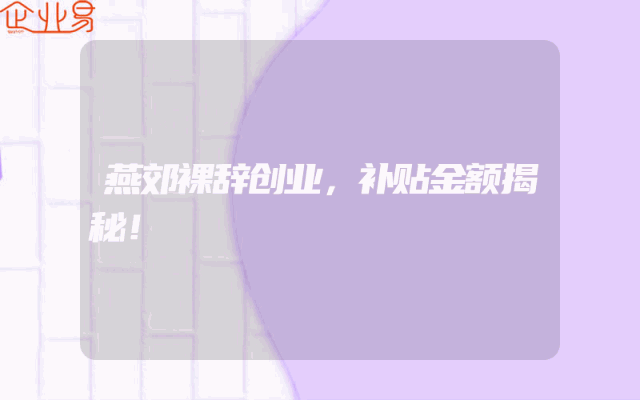 - 燕郊裸辞创业,补贴金额揭秘!一、裸辞创业的兴起近年来,裸辞创业在燕郊地区逐渐兴起。越来越多的人选择放弃稳定的工作,投身于创业的大潮。裸辞创业的兴起反映了年轻一代对自我价值的追求和对未来创业环境的乐观态度。在燕郊地区,政府对创业的扶持力度也越