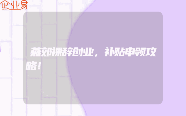 - 燕郊裸辞创业,补贴申领攻略!一、裸辞创业的勇气与决心在燕郊,有人选择裸辞创业,开启人生新篇章。裸辞创业不仅需要勇气,还需要对未知的决心和信心。如果你正处于这个阶段,首先要明确自己的创业方向和目标,制定详细的计划,并了解相关政策以获取支持。二