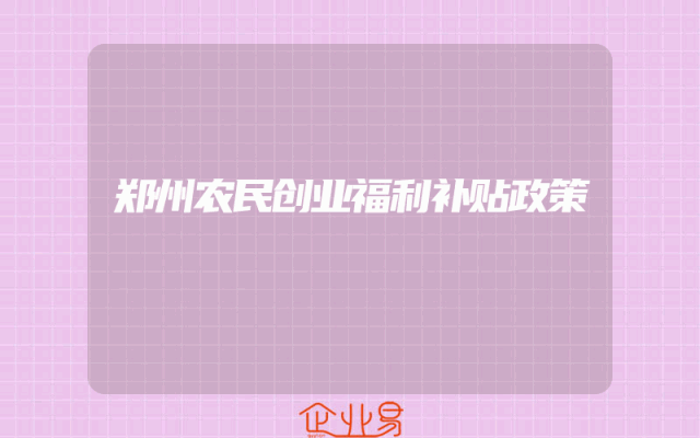 - 郑州农民创业福利补贴政策详解创业环境概述随着国家政策的不断扶持,郑州地区作为河南省的经济发展中心,对农民创业提供了众多的福利补贴政策。这些政策旨在鼓励农民立足本地资源,发挥创新精神,开展创业活动,推动农村经济发展。补贴政策详解针对农民创业,