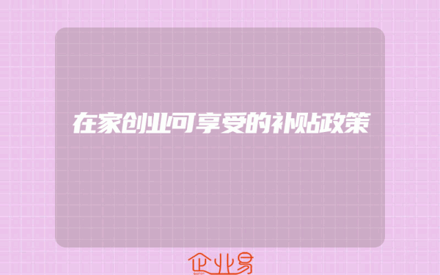 - 在家创业可享受的补贴政策