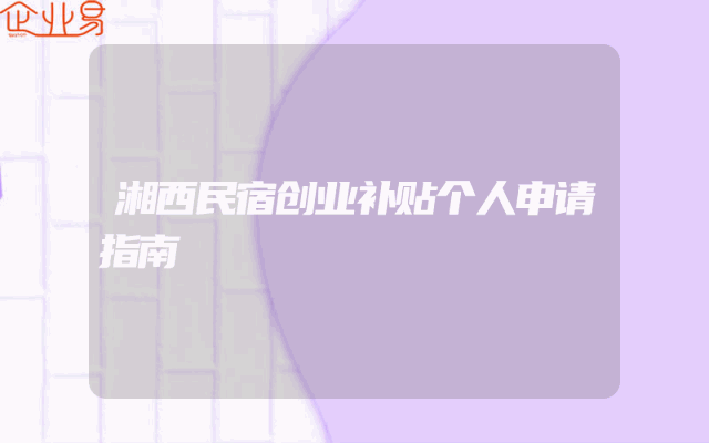 - 湘西民宿创业补贴个人申请指南