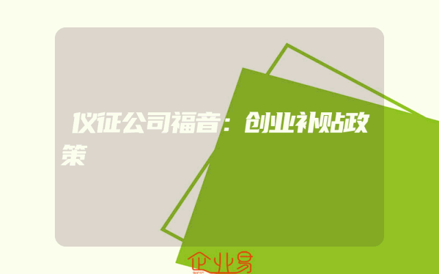 - 仪征公司福音:创业补贴政策详解一、创业补贴政策概述在当今鼓励创新创业的社会背景下,政府为了支持企业发展,推出了一系列创业补贴政策。仪征公司作为一家具有发展潜力的企业,对于这些政策应当有所了解并充分利用。二、具体补贴政策分析1.初始创业补贴: