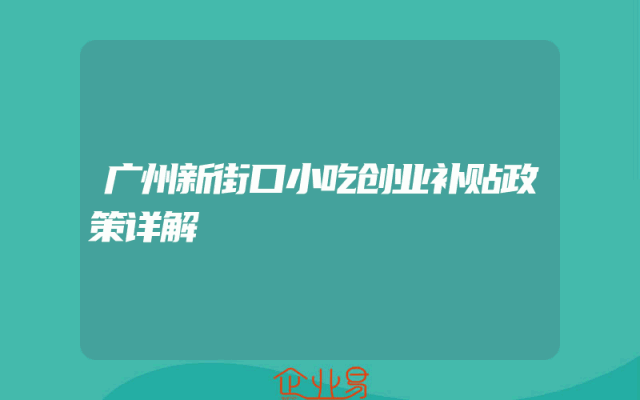 - 广州新街口小吃创业补贴政策详解一、政策背景与概述随着广州经济的持续繁荣和市民生活水平的提高,新街口作为广州市的重要商圈,小吃文化日益盛行。为了鼓励创业,促进经济发展,广州市政府针对在新街口地区从事小吃创业的企业和个人推出了一系列的补贴政策。