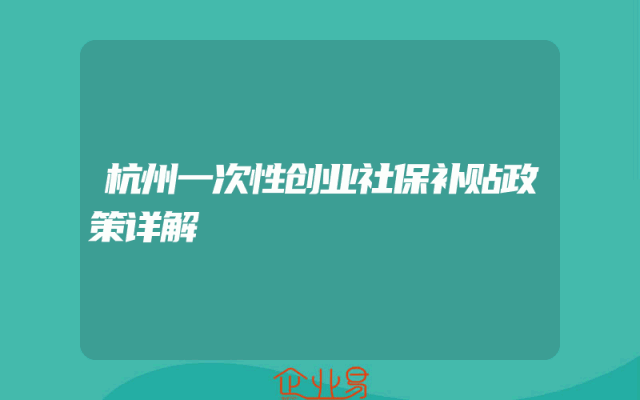 - 杭州一次性创业社保补贴政策详解创业在杭州的新利好:一次性创业社保补贴政策解读杭州作为创新创业的热门城市,一直以来都在为创业者提供优质的土壤和丰富的资源。近日,杭州的一次性创业社保补贴政策成为了众多创业者关注的焦点。本文将从多个角度详细解读这