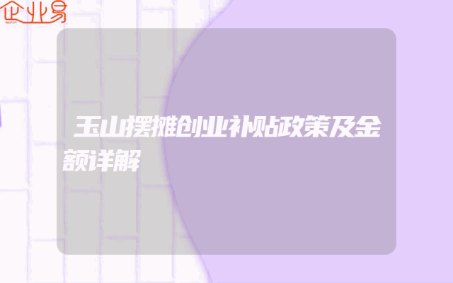- 玉山摆摊创业补贴政策及金额详解