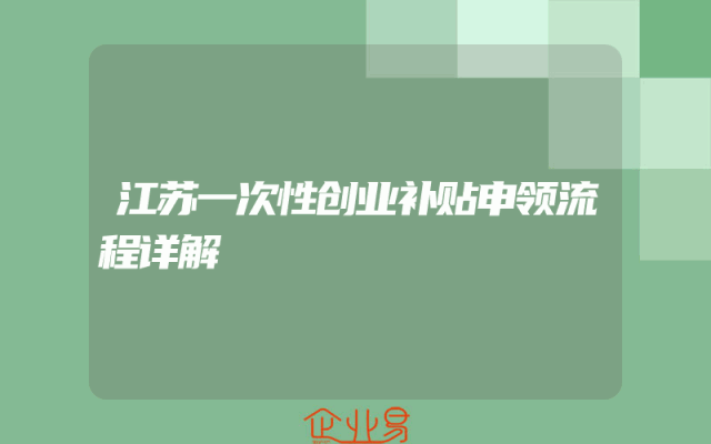 - 江苏一次性创业补贴申领流程详解