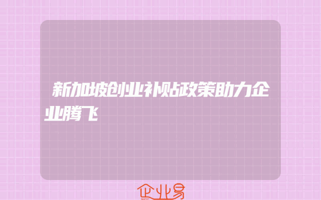 - 新加坡创业补贴政策扶持力度解析一、新加坡创业环境概述新加坡作为一个全球化城市,一直以来都是创业者与投资者的热门选择。其稳定的经济环境、高效的政府管理和友好的创业政策,为创业者提供了良好的发展平台。近年来,新加坡政府更是加大了对创业领域的扶持