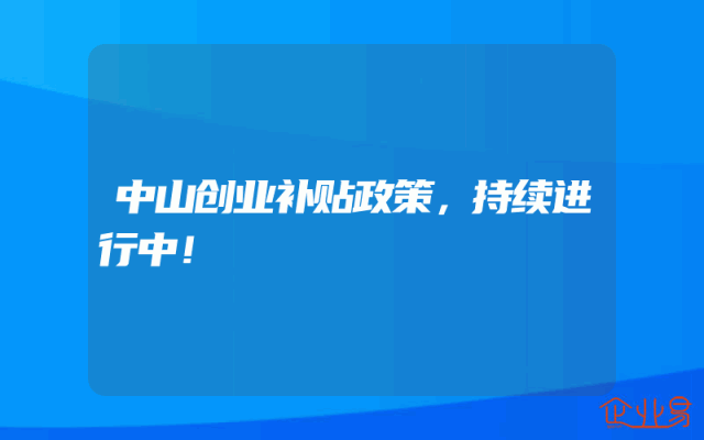 - 中山创业补贴政策,持续进行中!