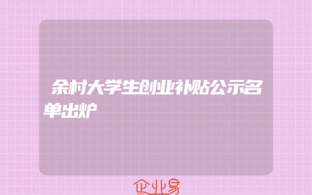 - 余村大学生创业补贴公示名单出炉