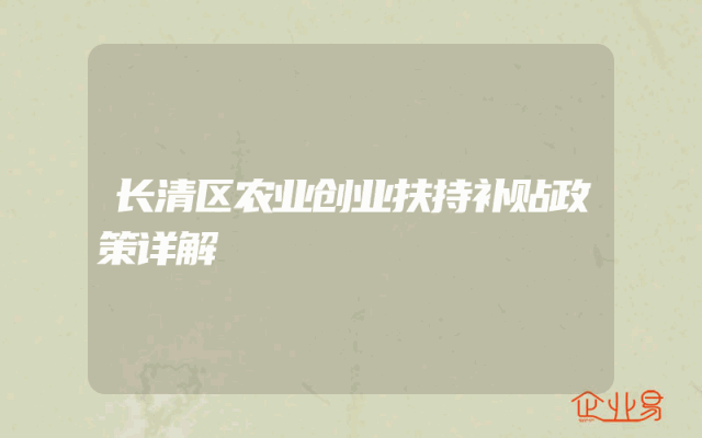 - 长清区农业创业扶持补贴政策详解